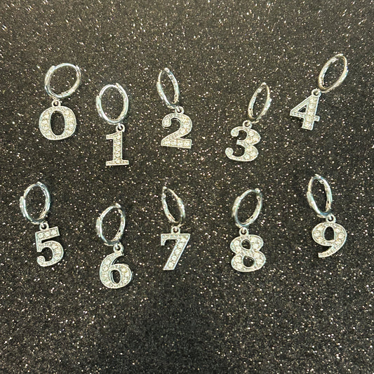 CUSTOM Number Earrings SILVER/RHINESTONE (See Description for Instructions)